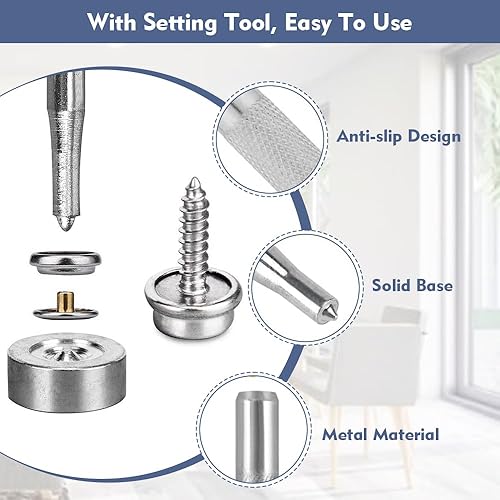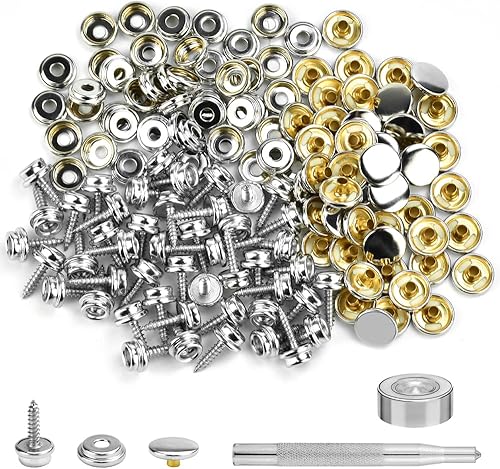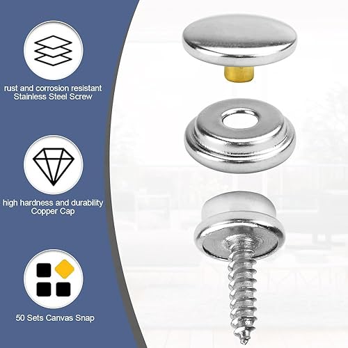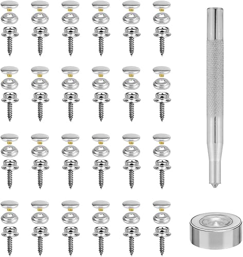 SNAGAROG 50 PCS Bouton Pression à Visser Inox 15mm Bouton Pression Metal à Visser Kit de Bouton Pression à Visser Bouton Pression Inox a Visser Pression Bouton Fixation