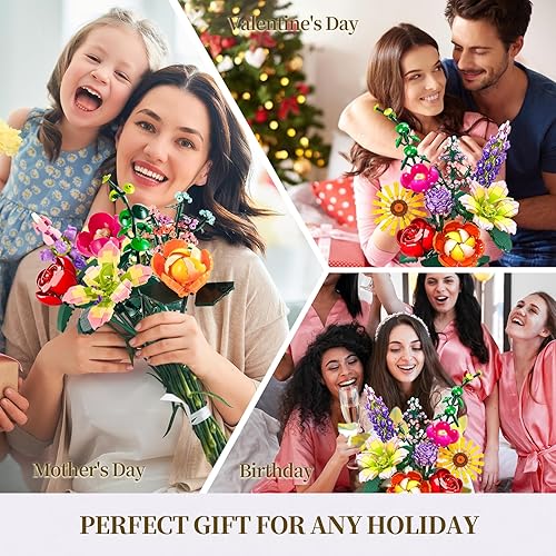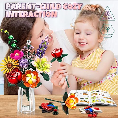 IKIDSUN Lot de 9 blocs de construction de fleurs, fleurs artificielles, pour bouquet de fleurs, cadeaux pour la fête des mères, un anniversaire, la Saint-Valentin, Noël, pour filles et adultes de 6