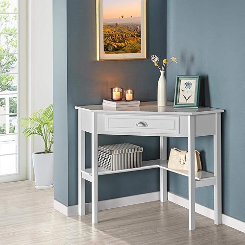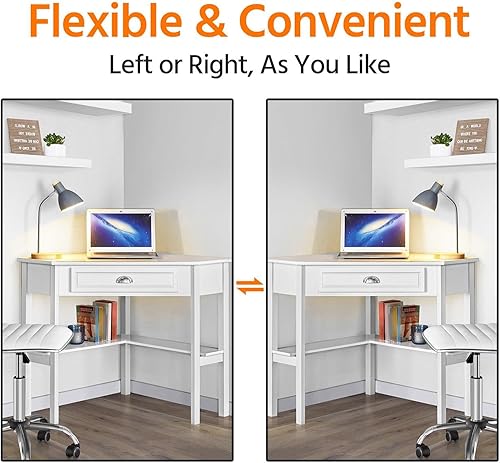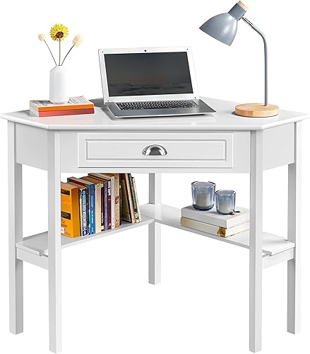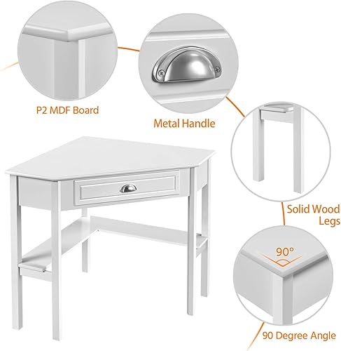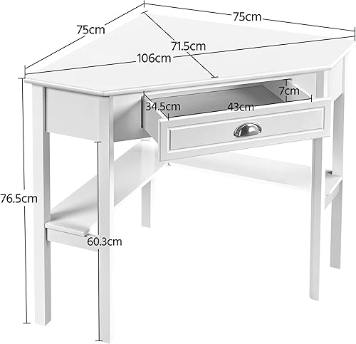 Yaheetech Bureau d'angle Poste de Travail Informatique Bureau en Bois avec Tiroir et Étagère de Rangement Design Classique et Élégant 106 × 71,5 × 76,5 cm Blanc