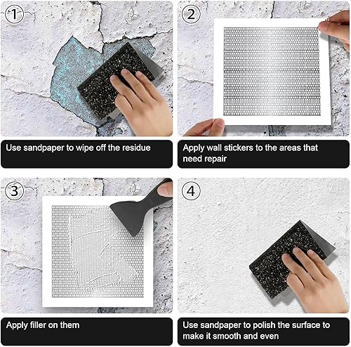 4pcs Drywall Patches, Patchs de Réparation de Trous Muraux Auto-Adhésifs 20x20cm Kit de Réparation de Patchs pour Cloisons Sèches pour la Réparation de Murs Cassés le Remplissage de Plafond
