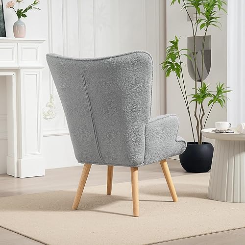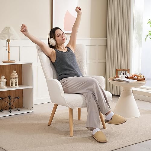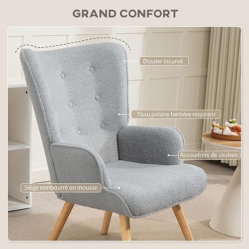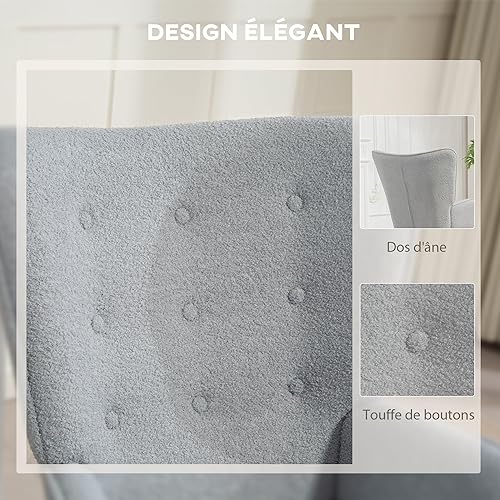 HOMCOM Fauteuil de Salon en Tissu Bouclette, Fauteuil Moderne, capitonné et rembourré avec Pieds en Bois, accoudoirs et Dossier Ergonomique, pour Salle à Manger, Salon, Chambre, Bureau, Beige