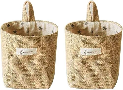 Monba 2PC Petite en Coton et Lin Sac à Pinces à Linge avec Cintre – Durable à Suspendre Sac à Pinces à Linge Pinces à Linge pour Pinces à Linge avec Cintre, Coton et Lin, Grey Star, 10 X 14X13 cm