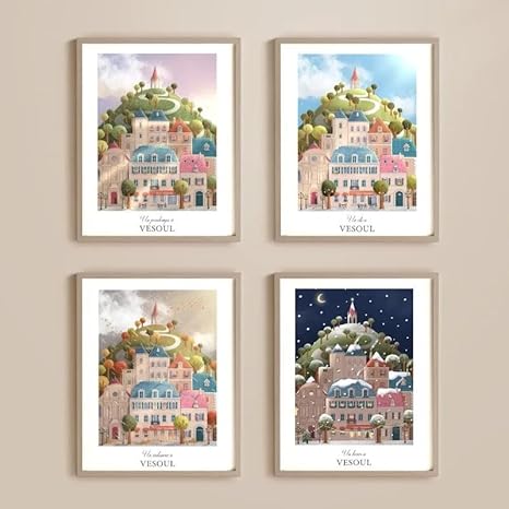 Baibexing Vesoul 4 Saisons Affiches Haute-Saône Franche-Comté Voyage Paysage Toile Peinture Mur Art Pour Salon Décoration De La Maison 30X40Cmx3Pcs Sans Cadre