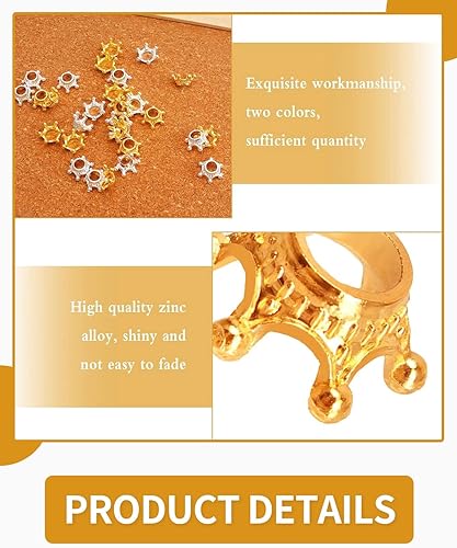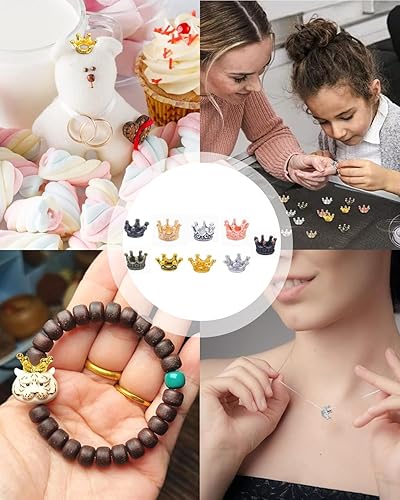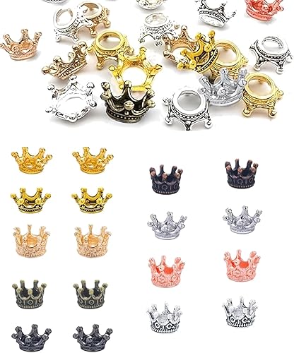 QLEUIFT 90 pcs Petites couronnes dorées, 9 Couleurs, Mini Breloques de Couronne pour travaux manuels, Bijoux de Couronne, Style tibétain Vintage, Perles en Alliage, pendentifs, Breloques