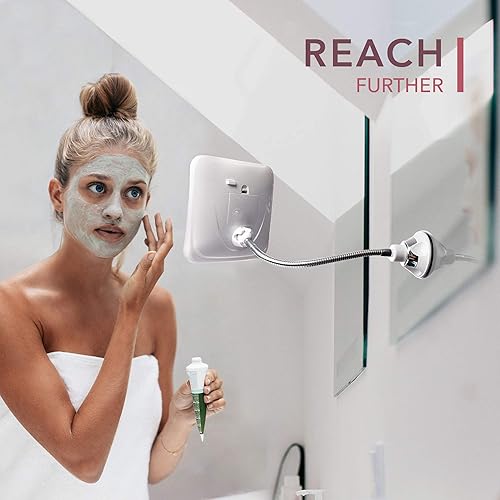 Fancii Miroir Grossissant Lumineux x10 avec Bras Flexible et Forte Ventouse - Miroir Maquillage Réglable de Voyage avec Lumière Naturelle LED (Mira +)