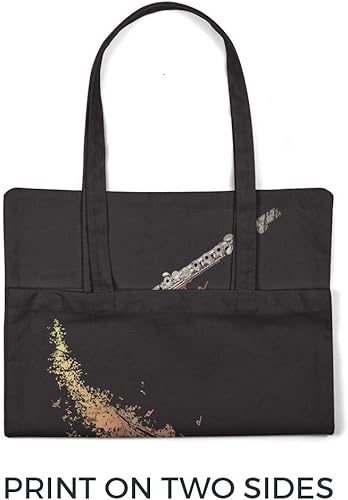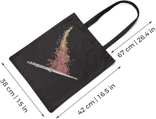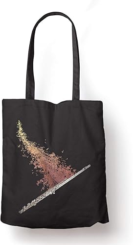 BLAK TEE Flying Musical Notes Flute Organic Cotton Reusable Shopping Bag Black