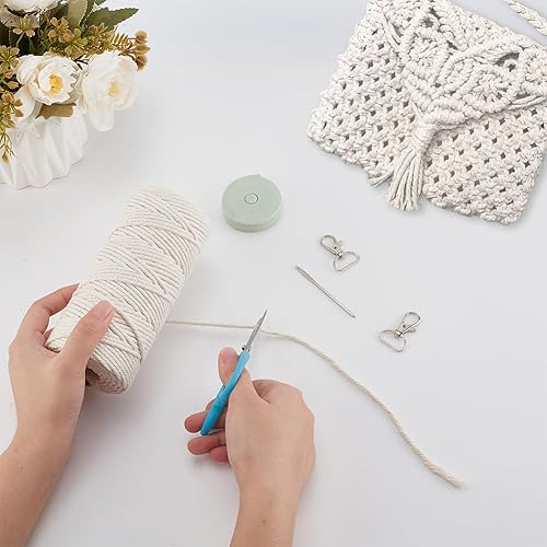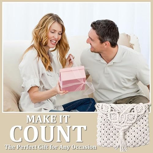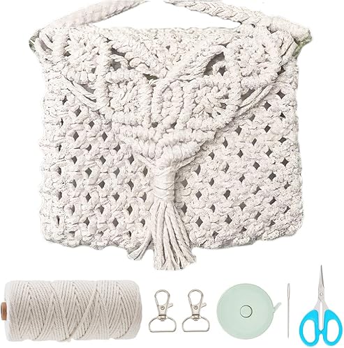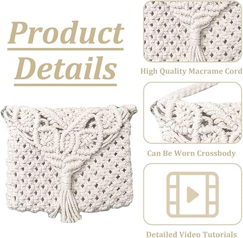 WEBEEDY DIY Kit de sac de Macramé Boho sac à Bandoulière Kit de Fabrication Kit de sac au Crochet avec Instruction pour Adultes Débutants,Main Kit de sac de Macramé pour Femmes Décor de Plage(Beige)
