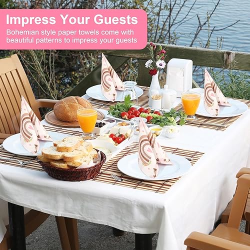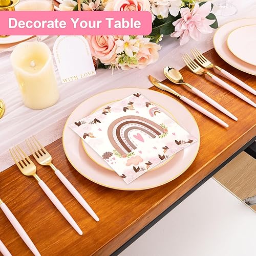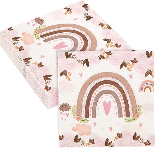 40 Papier Boho Serviettes, 33 x 33 cm Serviettes de Florales Serviette Papier Arc en Ciel Serviettes, Boho Serviettes Motif de Fleurs Jetables Serviettes de Fête pour Baby Shower Anniversaire