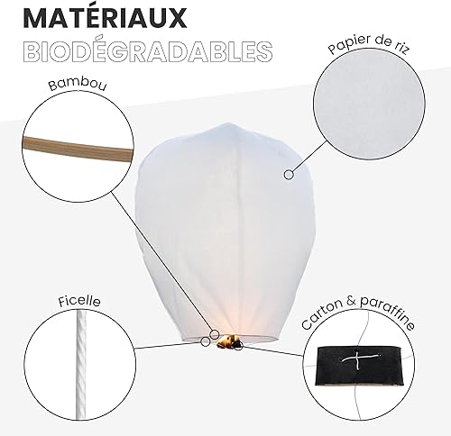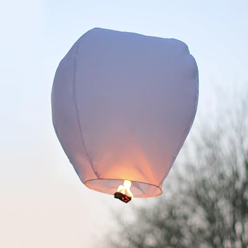 SKYLANTERN 10x Lanterne Volante Blanc 50x80 - Papier Indéchirable - 100% Ignifugé - 100% Biodégradable - sans Métal - Brûleur Inclus et Déjà Monté - Envol et Sécurité Garantis - N°1 en France