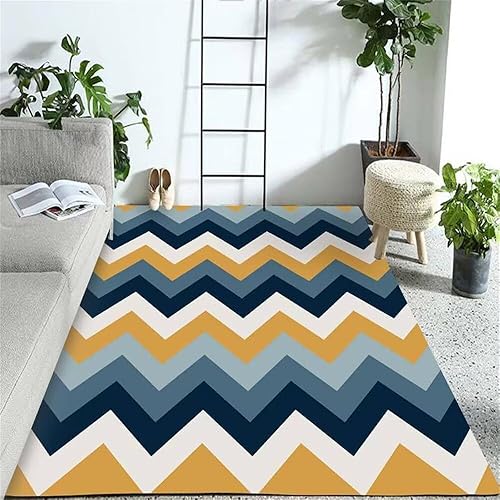 Tapis moderne à poils courts pour intérieur/extérieur - Motif à rayures bleues et jaunes - Pour chambre à coucher, salon, salle de jeux pour enfants - 130 x 200 cm