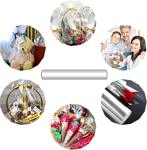 Papier Cadeau Transparent Rouleau, XiYee Rouleau de Cellophane Transparent Wrap Rouleau pour Emballage Fleur Cadeau Anniversaire Noël Pâques Fête (Transparent, 40CM x 30M)