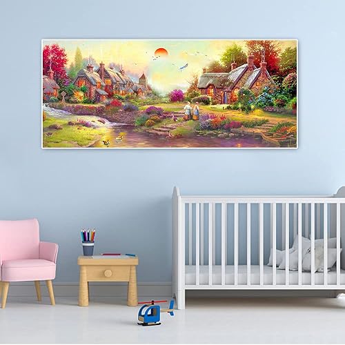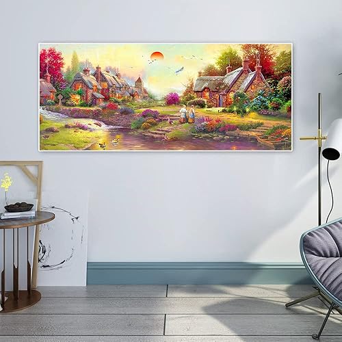 DCIDBEI Peinture Diamant Paysage Rural 110x50 cm (intérieur 104x44 cm) Diamond Painting Paysage Village Broderie Diamant Paysage Grand Format Diamond Painting Nature Paysage Arbre pour Adultes Salon