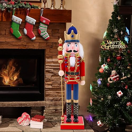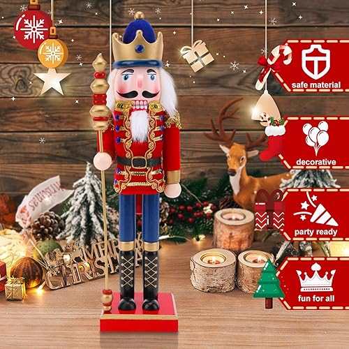 Aceshop Casse Noisette Noel 38cm/15, en Bois, Grand Decoration Noël Interieur - Casse-Noisettes Roi et Soldat Ornement Poupée Cadeau Christmas Figurine
