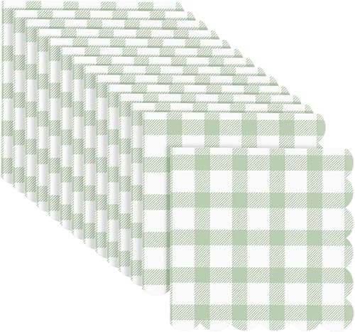 JIHUOO Lot de 80 serviettes en papier festonnées à motif vichy – Serviettes de table pour mariage, fête prénuptiale, invités – Serviettes décoratives pour fête d'anniversaire, anniversaire de mariage