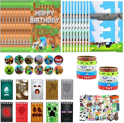 HYZMSZA Jeux vidéo Cadeau Anniversaire Enfants, Fournitures de Fête Enfants avec Sacs de Fête Bracelet en Silicone Claque Carnet Broches Bouton Stickers