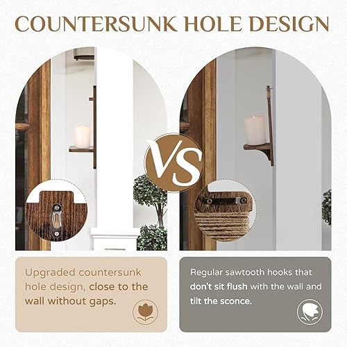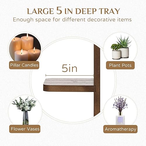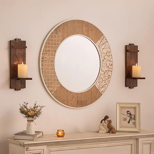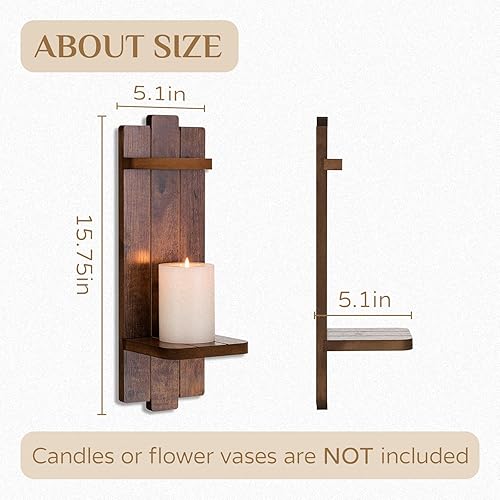 Walasis Lot de 2 bougeoirs muraux en bois vintage Marron