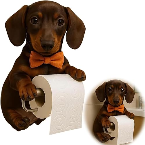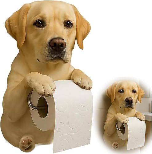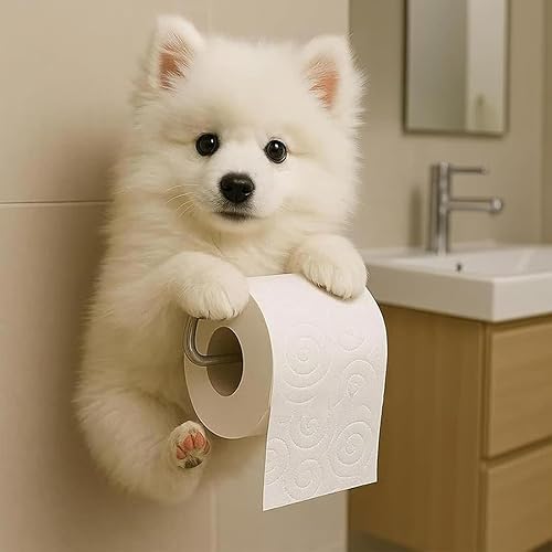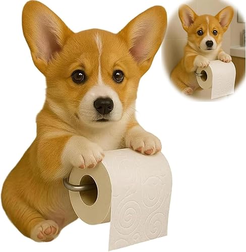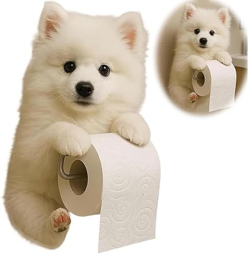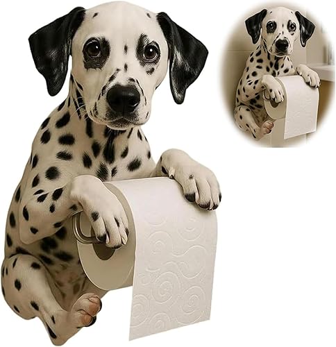 Support Papier Toilette Mural Forme De Chien, Joli Porte Chien Papier 3D, Derouleur Papier Toilette Murale en Forme d'animal, 22×16×12cm, Cadeau pour Les Amoureux des Chiens. (D)