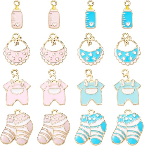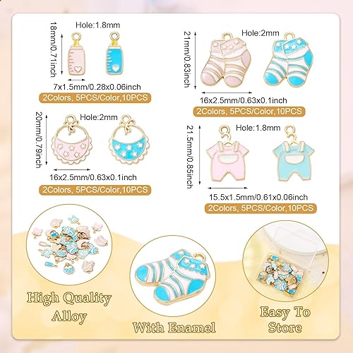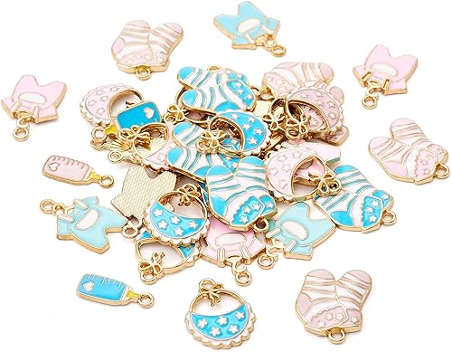Bestewelry Lot de 40 breloques en alliage pour bébé - 8 styles - En émail coloré - Thème bébé - Jolies breloques pour vêtements de bébé - Breloques pour loisirs créatifs, bracelets, colliers,