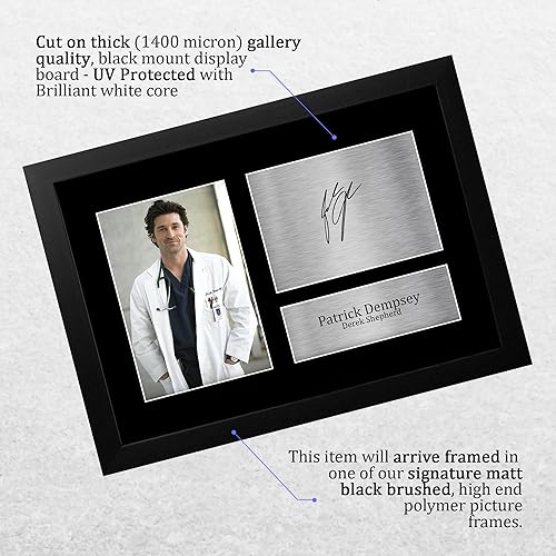 HWC Trading FR A4 Patrick Dempsey Grey's Anatomy Derek Shepherd Cadeaux Imprimé Signé Autographe Photo pour les fans d’émissions de télévision - A4 Encadré