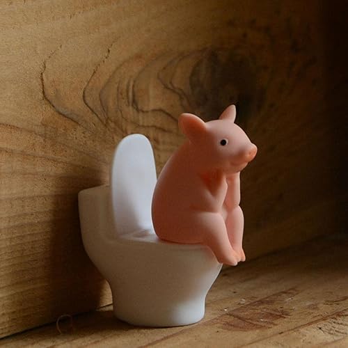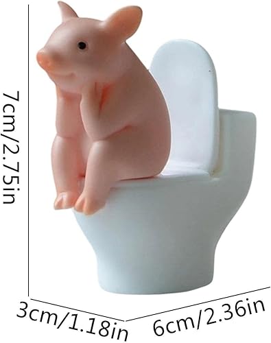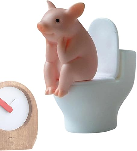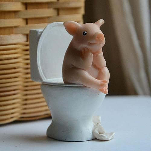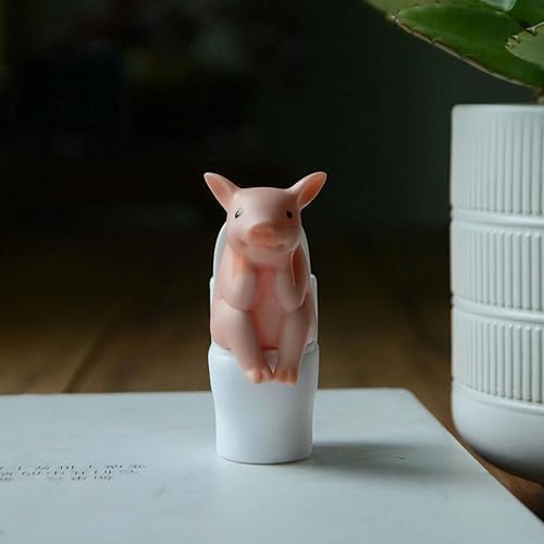 Lambo Cochon Ornements de bureau, cochon de dessin animé, cochon accroupi sur les toilettes Statue animale, cochon accroupi sur les toilettes, statue d'animal, figurine miniature animale, décoration