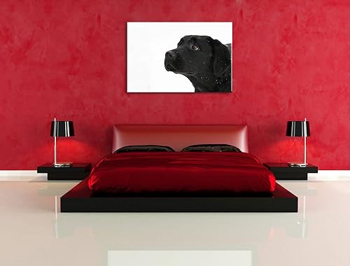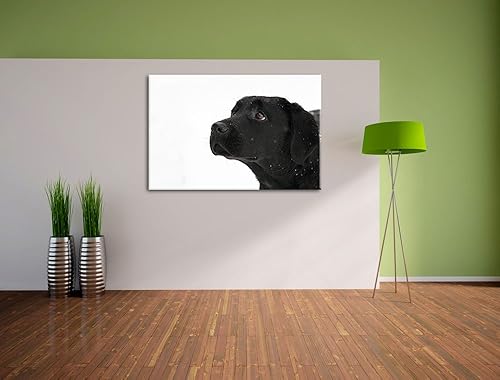 Labrador noir dans la neige Toile, XXL photos complètement encadrée avec de grandes images de coin, art impression sur la photo murale avec cadre, moins cher que la peinture ou une peinture à l'huile, pas une affiche ou bannière