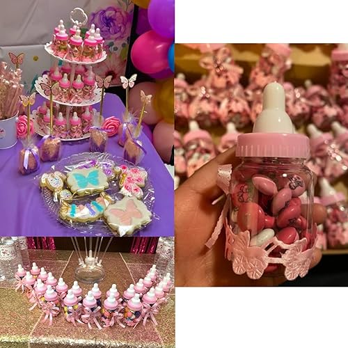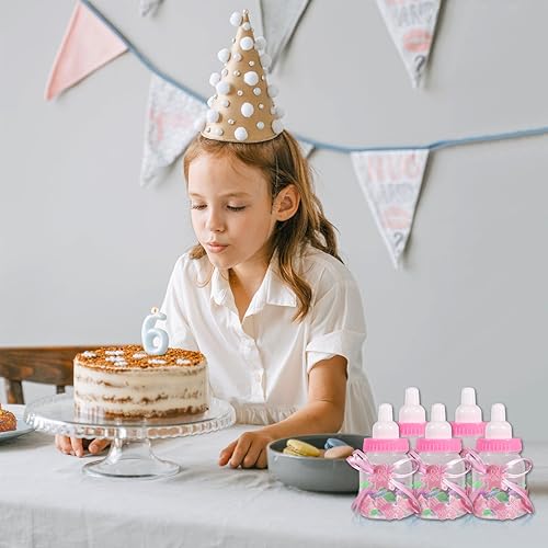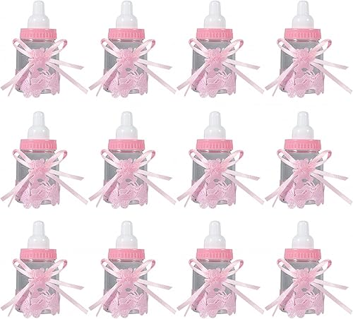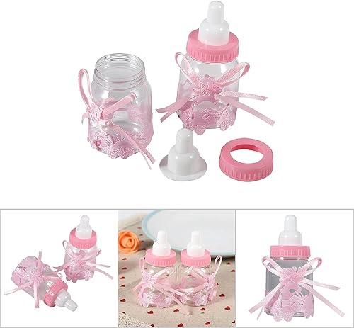 Agatige Lot de 12 Bébé Bouteilles Bonbons, Rose Bouteilles Cadeau Biberon à Dragées Biberon de Bonbons pour Fête d'anniversaire des Enfants, Baby Shower Party, Party Accessoire