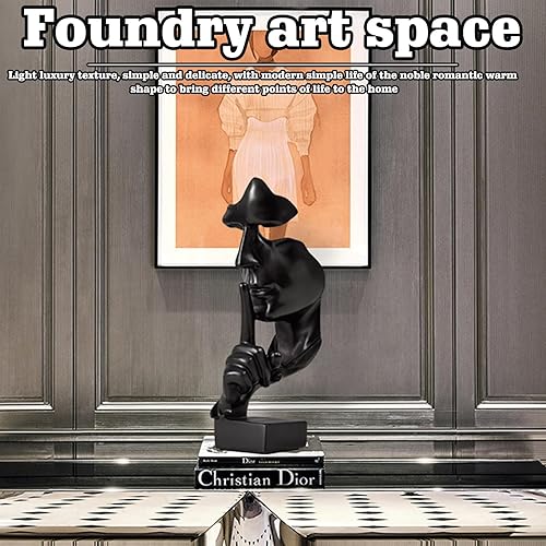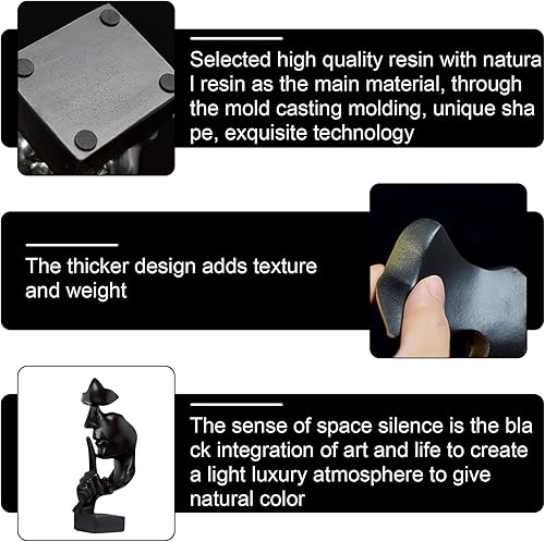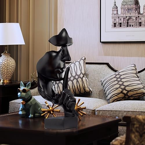 TOATELU Sculpture décorative moderne, Silence is Gold, statue de penseur en résine, sculptures modernes, créatives, minimalistes pour salon, bureau (noir)