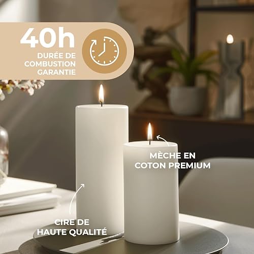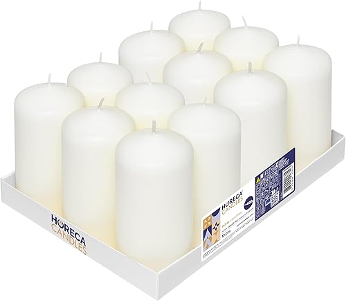 Horeca Candles - Bougies Piliers - Ivoire - Ø 6 x 12 cm - Lot de 6 Bougies Décoratives pour la Maison - Longue Durée 40 Heures - Cire Non Parfumées - Pour la Maison, Mariage, Fêtes et la Restauration