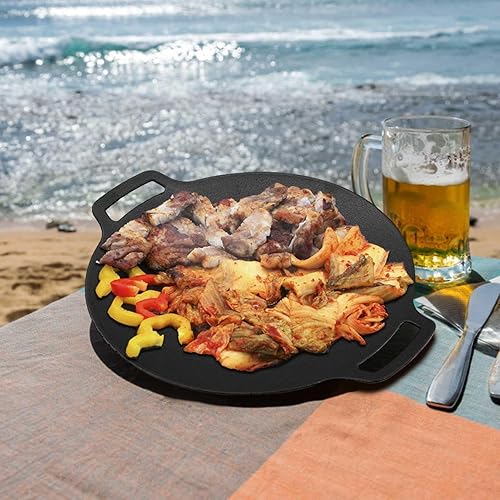 Korean Grill – Poêle Ronde En Fonte Pour Griller Le Steak | Compatible Avec Les Plaques De Cuisson À Induction, Les Plaques Chauffantes, Les Cuisinières Électriques, Utilisation Intérieure Extérieu