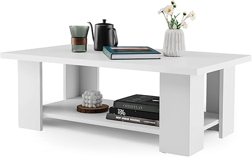 GOPLUS Table Basse Salon 2 Niveaux avec Grand Plateau, Table Basse Rectangulaire Moderne MDF Plateau 95KG, Étagère 30KG,pour Bureau Salon,90X52X32,5CM