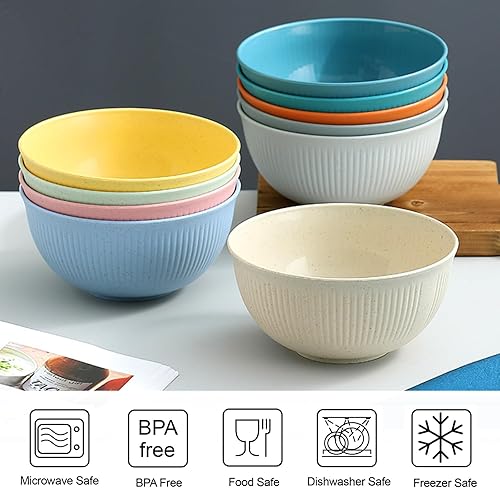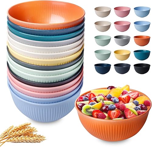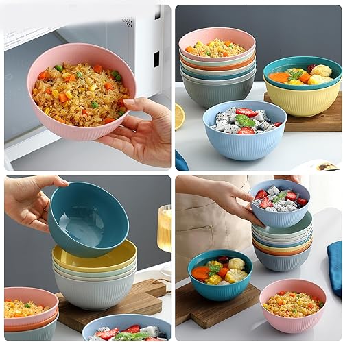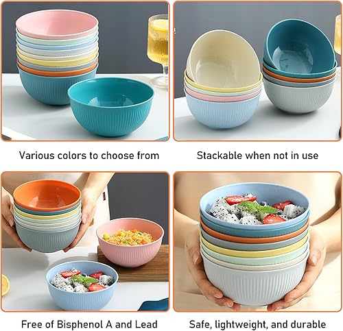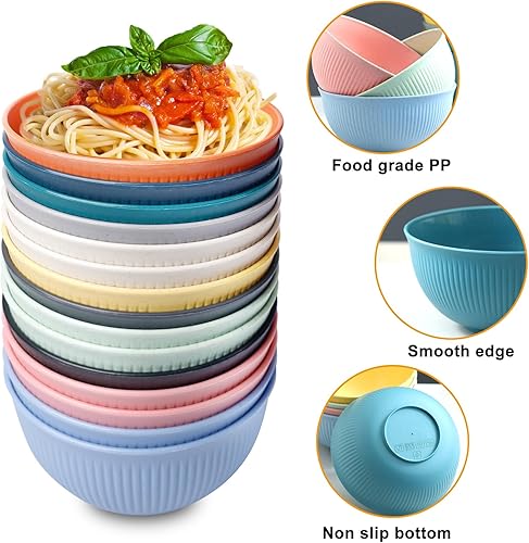 Vegena 15pcs Bol Petit Déjeuner, Bols De Céréales, Bols À Céréales Bol En Plastique Bol Plastique Reutilisable Incassable Saladier Bol À Soupe Bols En Plastique Pour Salade, Céréales, Soupe 700ml