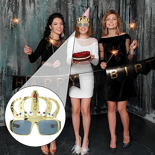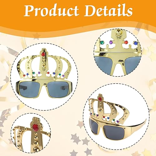 BIBITI Lunettes de soleil amusantes en forme de couronne royale - Lunettes dorées - Lunettes de fête amusantes - Lunettes de soleil laides - Accessoires pour homme et femme - Lunettes de reine