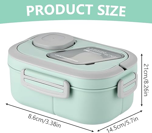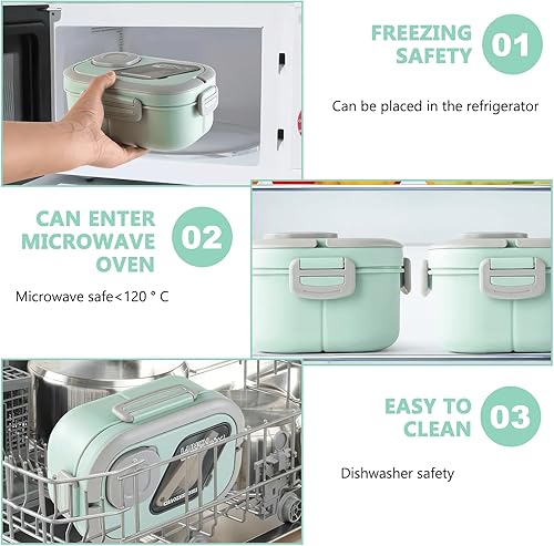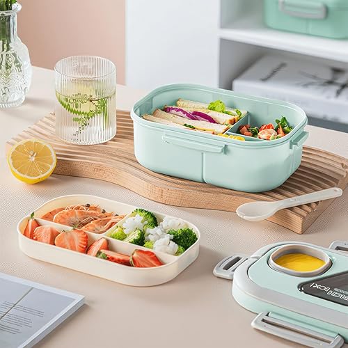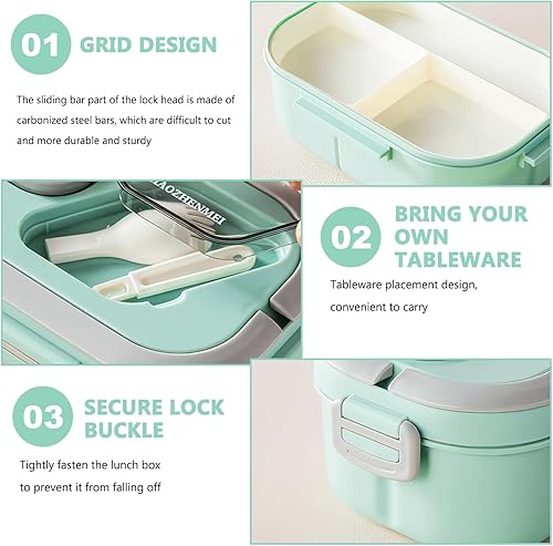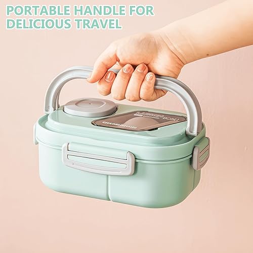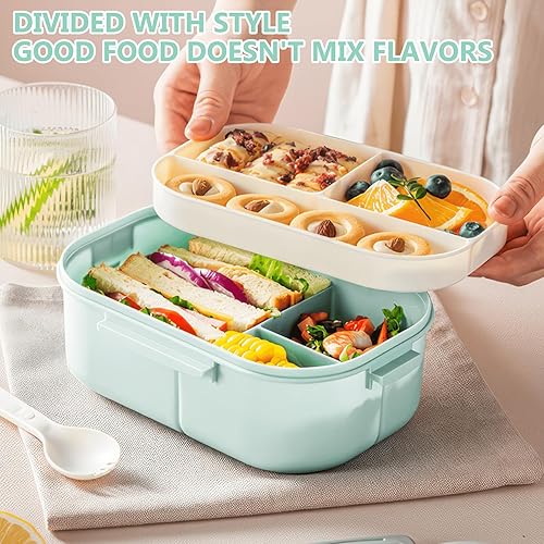 Miawtro Boîte à déjeuner Bento double 1200 ml avec compartiments, boîte à lunch pour adulte, boîte à salade à emporter, boîte à lunch de qualité alimentaire, passe au micro-ondes (vert)
