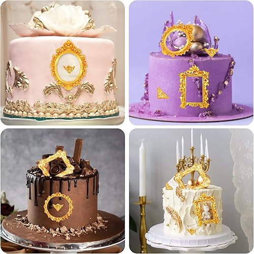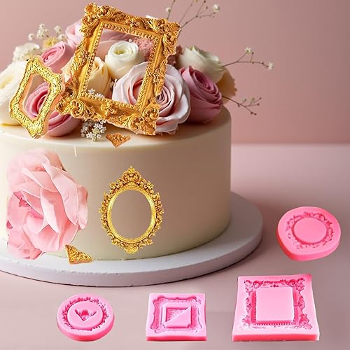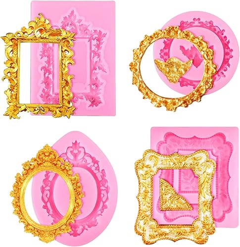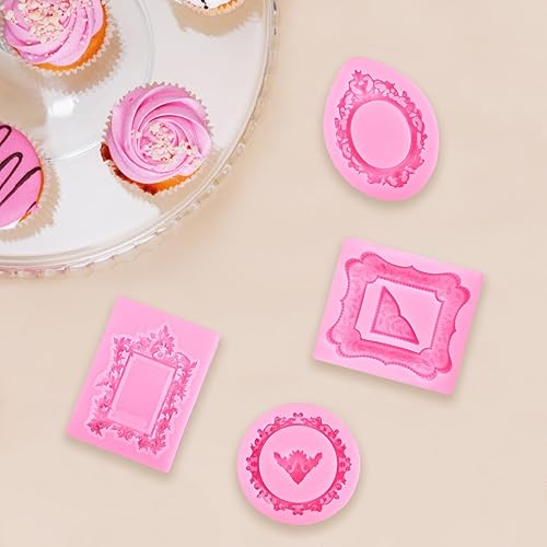 Moules en Silicone pour Cadres Photo, 4pcs Moule Silicone Style Baroque, Moule en Silicones pour Fondant, Convient pour la Décoration de Cupcakes, Chocolat, Bonbons, Pâte PolymèRe, Colle