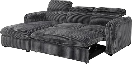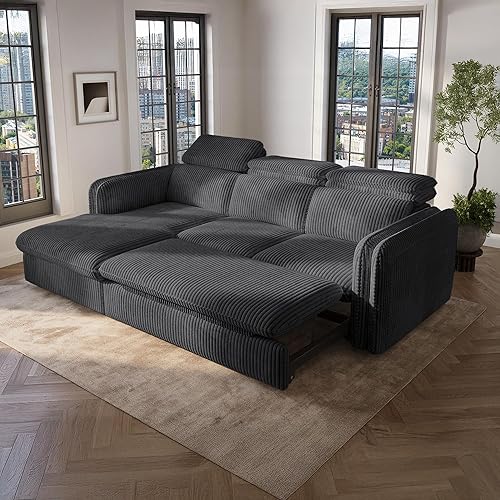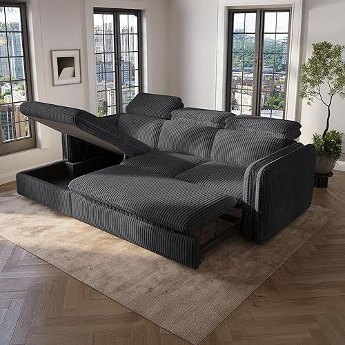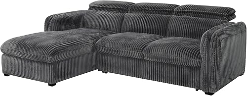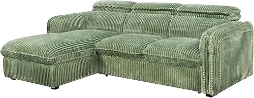 Mobilier-Deco Alix - Canapé d'angle Convertible en Velours côtelé épais Vert foncé- Angle Gauche