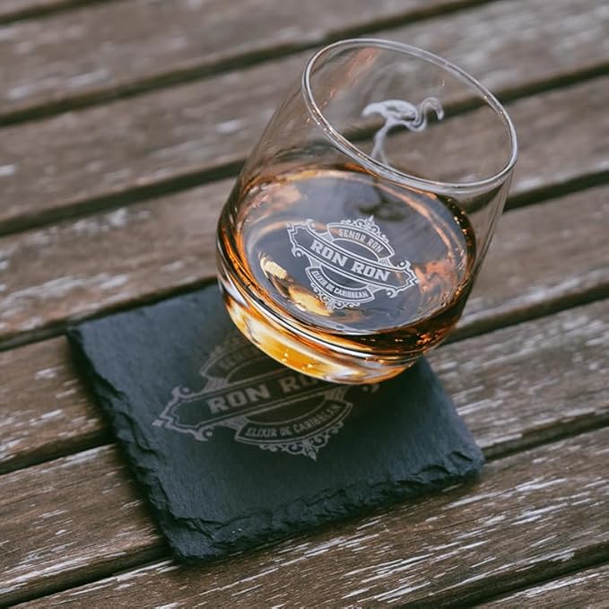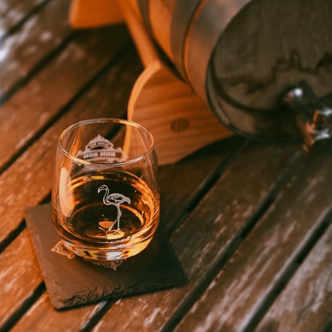 Ron Ron Verre à rhum de qualité supérieure - Édition limitée avec motif flamant rose - 270 ml - Verre gravé au laser - Passe au lave-vaisselle - Pour rhum, whisky et cocktails - 88 mm de hauteur
