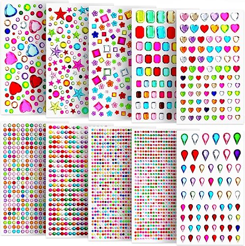 Lot de 3500 pierres à paillettes autocollantes à coller pour le bricolage - Pierres à paillettes pour le bricolage - Strass autocollants - Multicolore - Différentes formes - Tailles