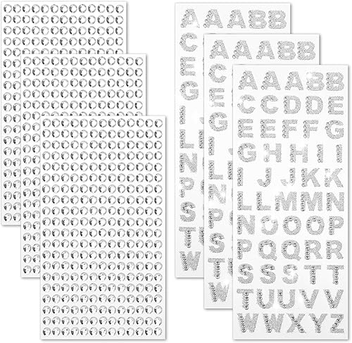 Lot de 945 lettres autocollantes en strass - 6 feuilles - Paillettes - Lettres de l'alphabet - Noir - Paillettes - Pour bricolage, artisanat, décoration, vêtements