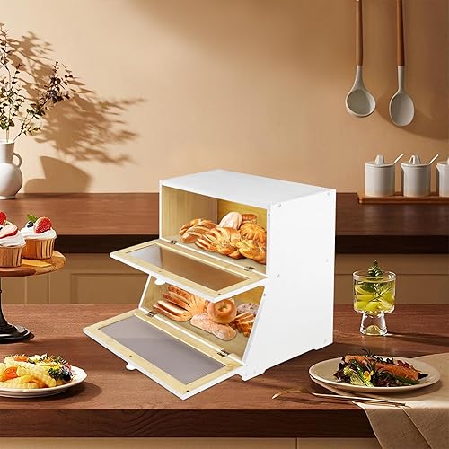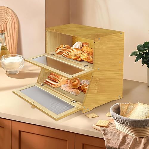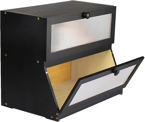 HUOLE Boîte à Pain Bambou 2- Couche Countertop Boîte en Bois pour Cuisine, Huche,pour le stockage du pain-40 x 33 x 25 cm - Bambou - Noir
