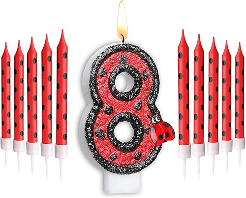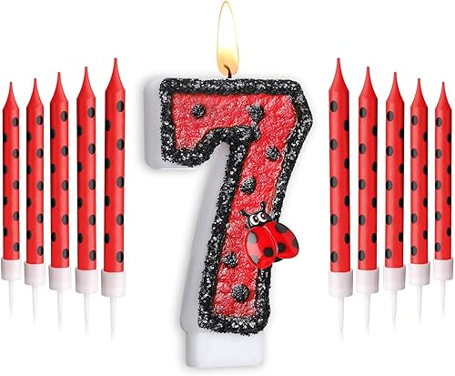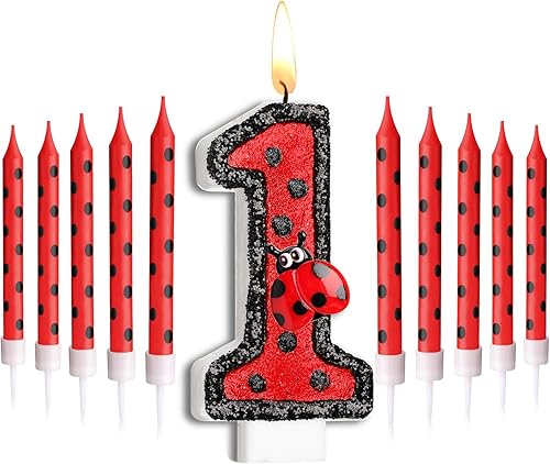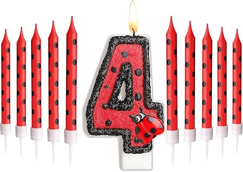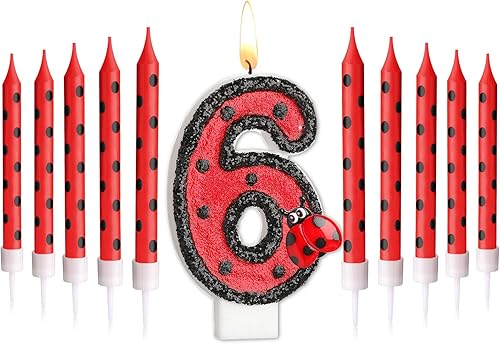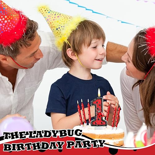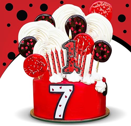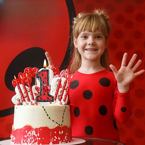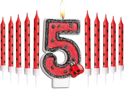 Herdear Bougies de Gâteau d'Anniversaire de Coccinelle de Numéro 1-9 Bougie Numérotée Bougies à Pois Rouges Noirs Bougies Topper de Cupcake à Thème Coccinelle pour Enfant Baby Shower (Numéro 5)