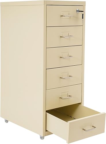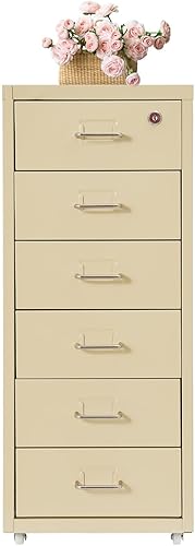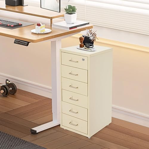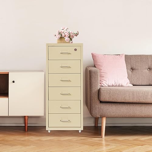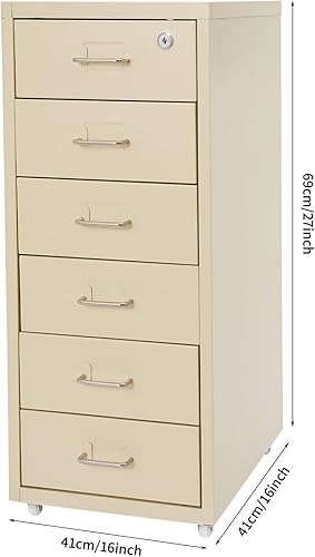 czyuRachel Meuble de rangement à roulettes avec 6 tiroirs, armoire de rangement mobile, en métal, avec roulettes, pour la maison et le bureau, 28 x 41 x 69 cm, beige