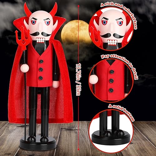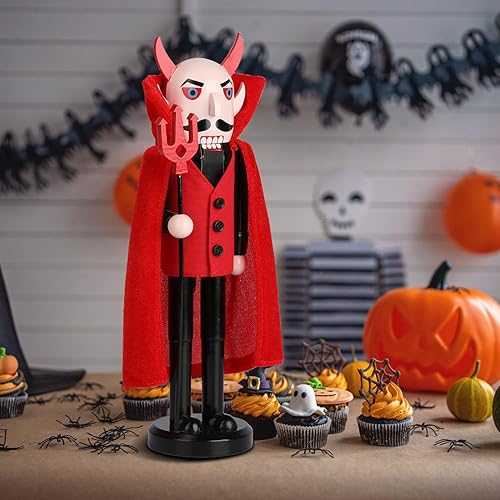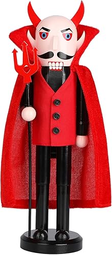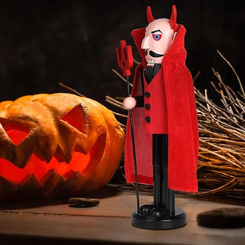 Auluda Décoration de Noël Halloween Casse-Noisette Figurines en bois faites à la main Figurines cadeaux festives à collectionner Étagères Cadeau de décoration (Diable d'Halloween)