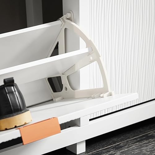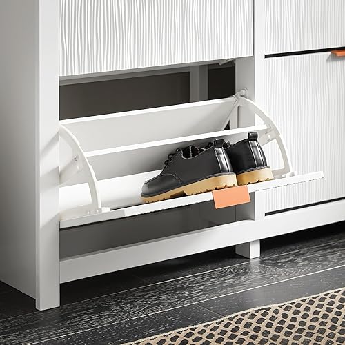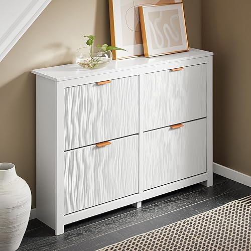 SoBuy 30% de Réduction Meuble Chaussure, Rangement Chaussure, Meuble d'Entrée, Armoire à Chaussures, Meuble de Rangement à 4 Abattants, pour Couloir, Salon, Blanc, 104x23x82cm, FSR186-W