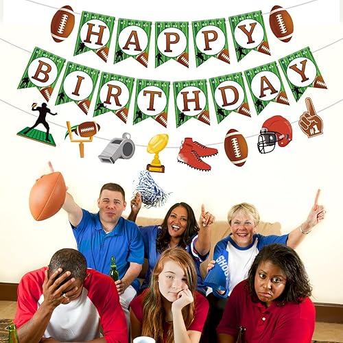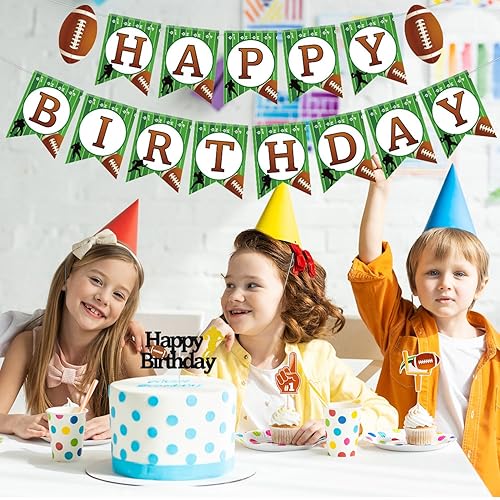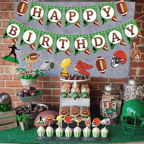 Décorations de Fête de Rugby, Comprenant des Bannière de Joyeux Anniversaire de Rugby Décorations Gâteau Décorations d'Anniversaire Rugby pour le Sport les Enfants les Adultes Fêtes Prénatales