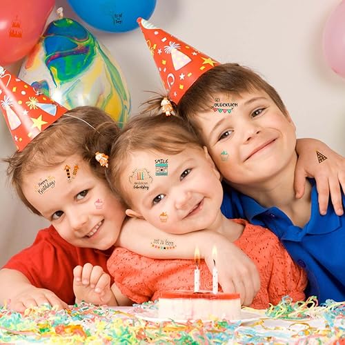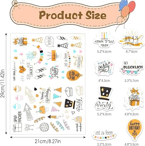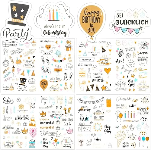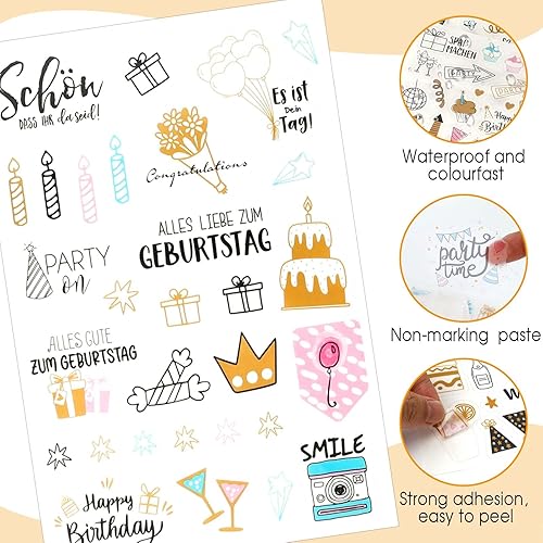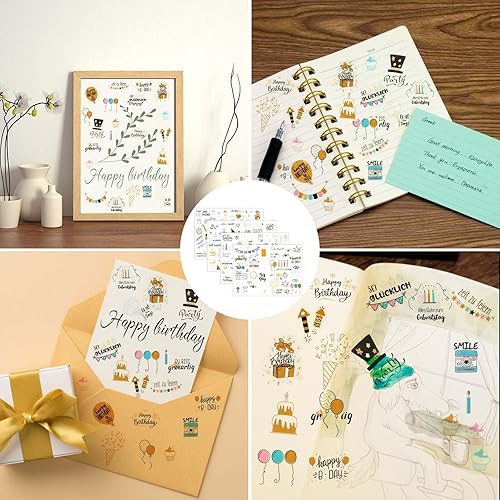 4 Pcs Sticker d'Anniversaire, 225 Motifs Autocollant Scrapbooking Aniversaire, Sticker de Décoration Aniversaire, Autocollants pour Livre d'Or Album Photo Cartes Invitation