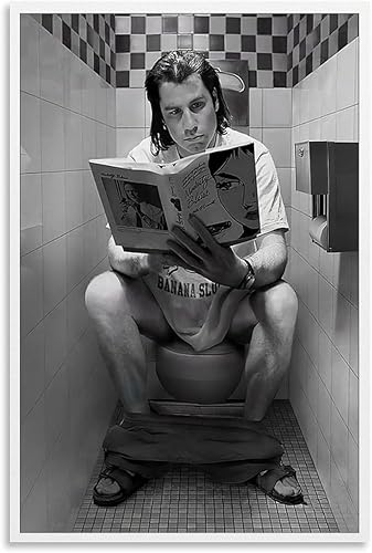 Pulp Movie Posters Fiction Drôle Salle de Bain Vincent Vega Sur Les Toilettes Salle De Bains Poster Pour Chambre, Art Mural Esthétique Sur Toile, Décoration De Chambre À Coucher Poster 30 x 45 cm