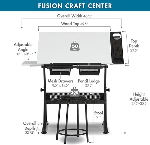 Studio Designs Fusion Station de Loisirs créatifs, métal, Anthracite/Blanc, 122 x 61 x 90 cm