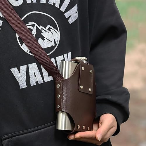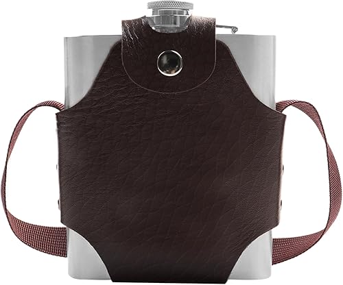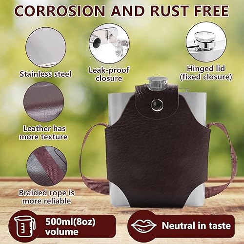 Flasque a Alcool en Acier Inoxydable Set de Flasque en Acier Inoxydable 18 oz/532 ML Flasque de Poche Portable Livré avec étui et bracelet en Cuir pour Randonnée, Voyage, Pêche, Camping et Escalade
