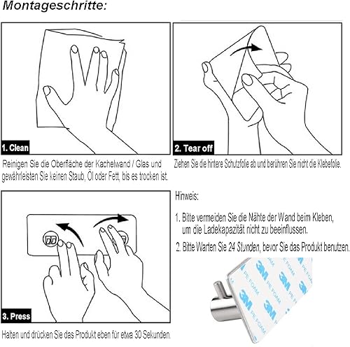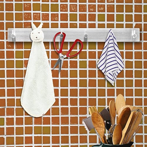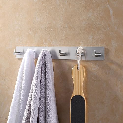 ETiME Crochet Adhésif Mural, Porte Serviettes Salle de Bain Inox, Porte Torchon Cuisine (4 Crochets)