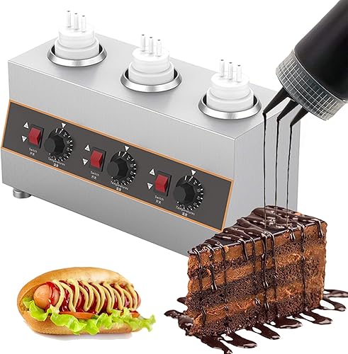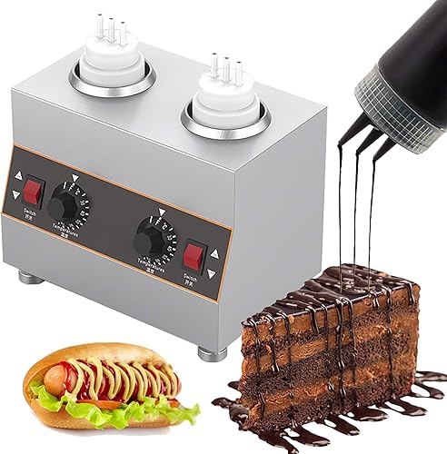 MaquiGra Chauffe-Sauce électrique en Acier Inoxydable Réchauffeur de Chocolat Commercial température réglable 30-85 ℃ Chaque Bouteille de 650 ML Convient pour Chauffer Toutes Sortes de sauces